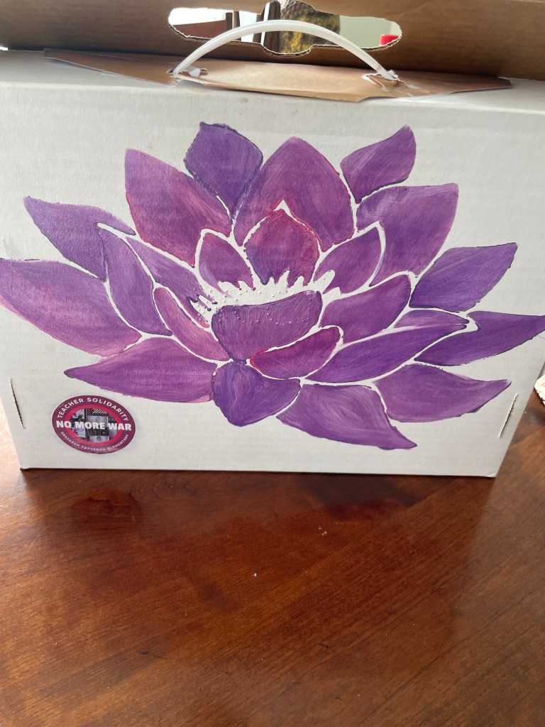 I am going to clear off my desk and other surfaces to create good systems for art supplies, and blanket supplies. Otherwise, my class will be a disaster and I’ll constantly be losing time and energy looking for things for students.