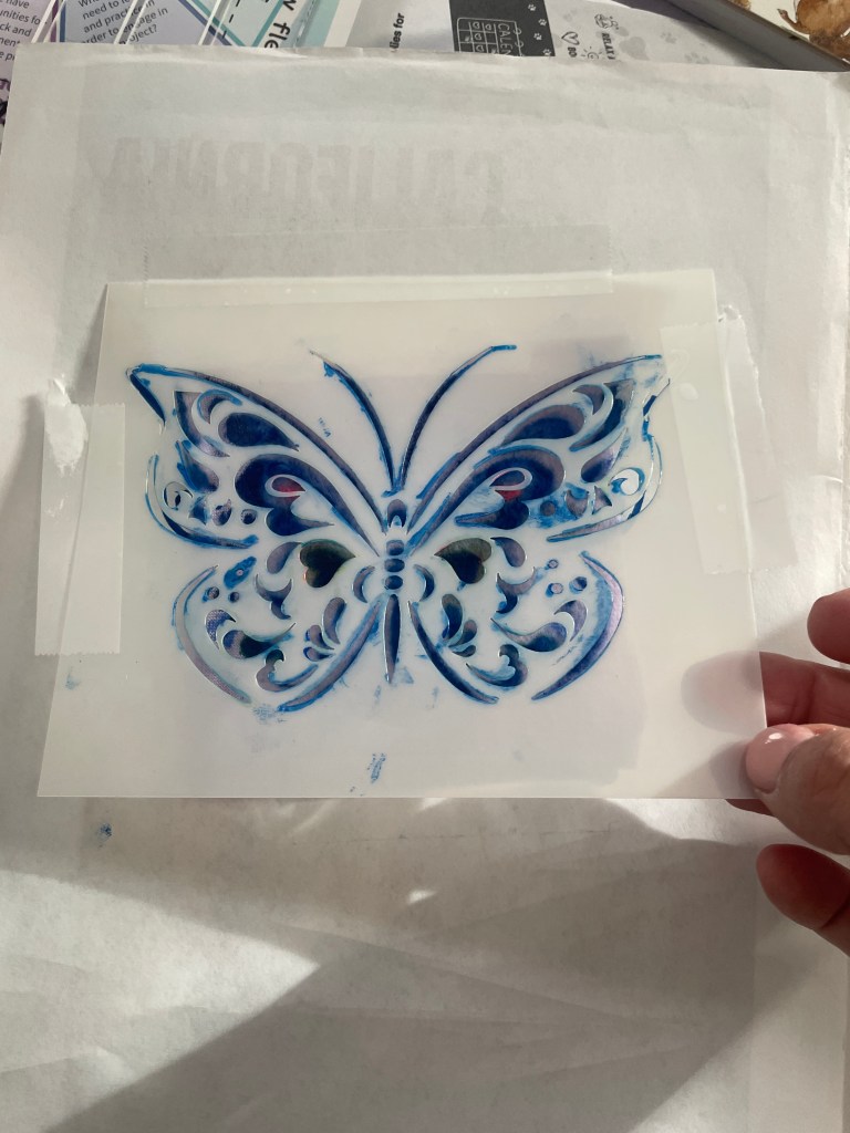 I have plenty of fleece. All that is needed is a ruler and tailor’s chalk. Keep a package of hand wipes at the blanket station so that there is a thorough wipe down before putting a blanket on the table, and wipes to clean your fingers before touching the fleece. They will get chalk on them from making the cut marks. Also, I used a stencil and fabric paint for the design. Next time, I will place a paper underneath to catch paint that seeps through the fabric. I will also tape all four sides of the stencil so that it doesn’t move. Upon reflection, I would recommend using a light amount of paint instead of “gooping” it on like I did. I think fabric spray paint would be the obvious ideal choice.