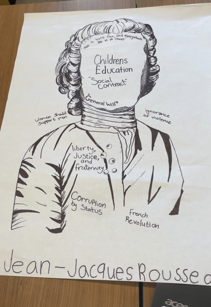 The Enlightenment Café is inspired by the World Café model, a collaborative dialogue process that transforms classrooms into lively cafés of ideas. Students gather around tables named after different philosophers of the Enlightenment / Age of Reason.